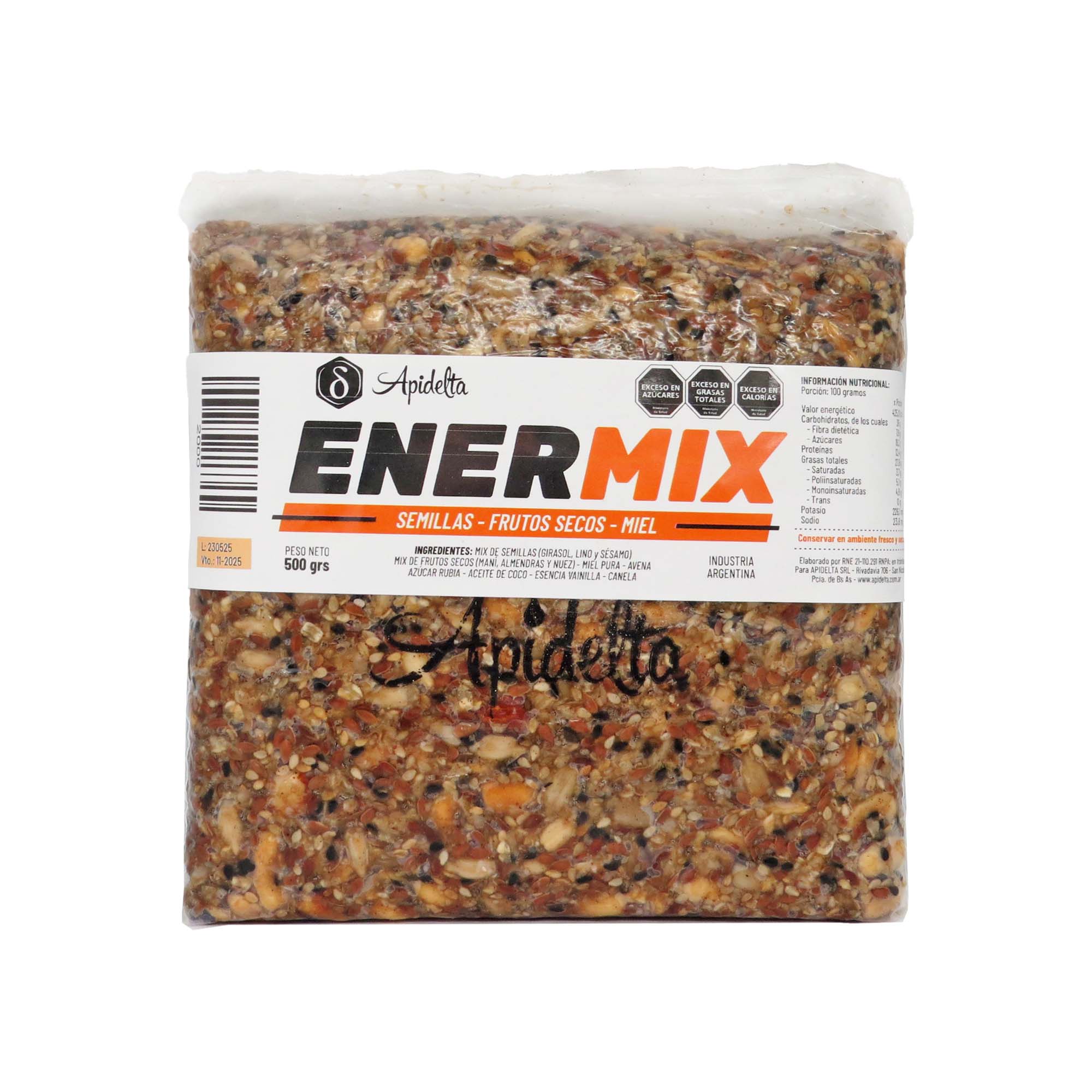 Nuestro Enermix® te aporta vitaminas, minerales, proteinas, hidratos y grasas de primera calidad. Compuesto por frutos secos, semillas, avena y miel. 100% sabor 100% Nutrición 100% calidad. Presentación de 500G.